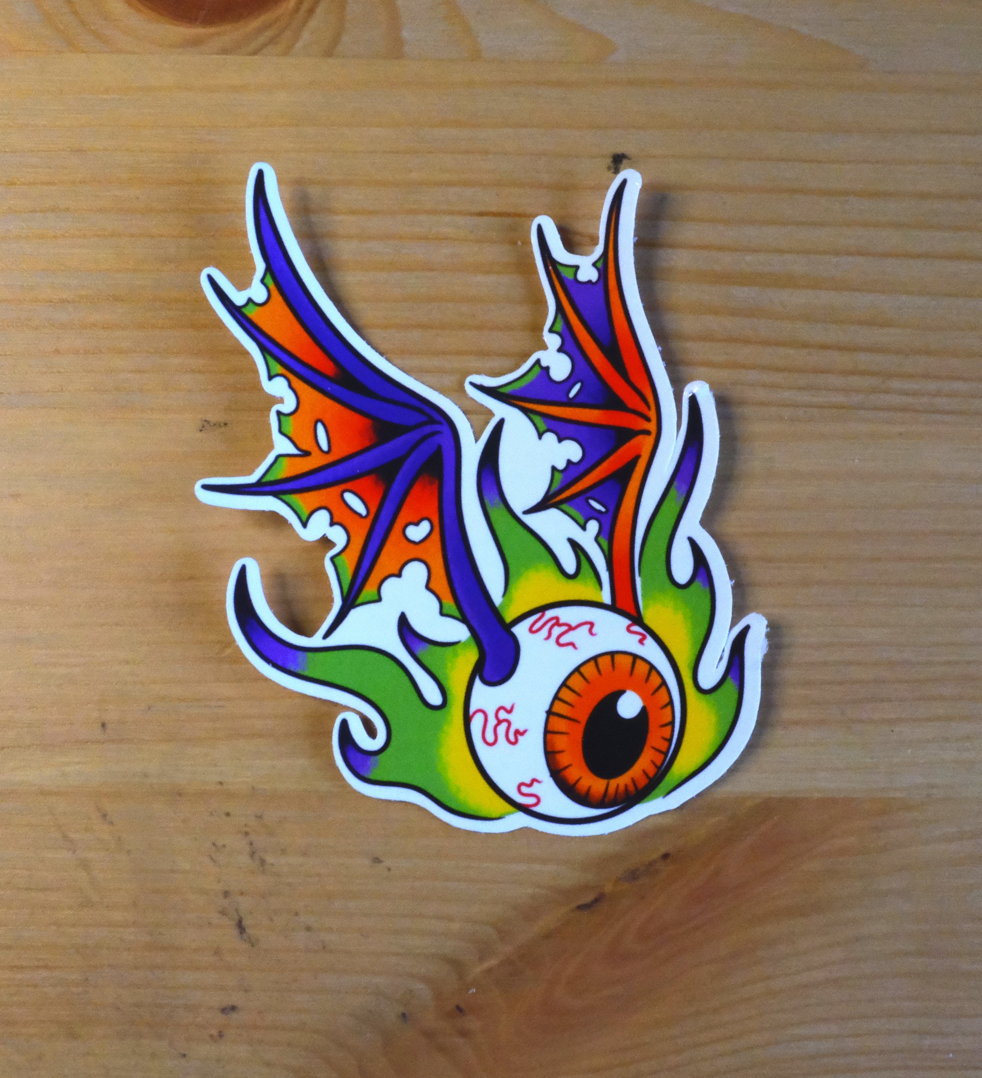 7cm wide glossy vinyl sticker, made in house (literally, I make them at home!)