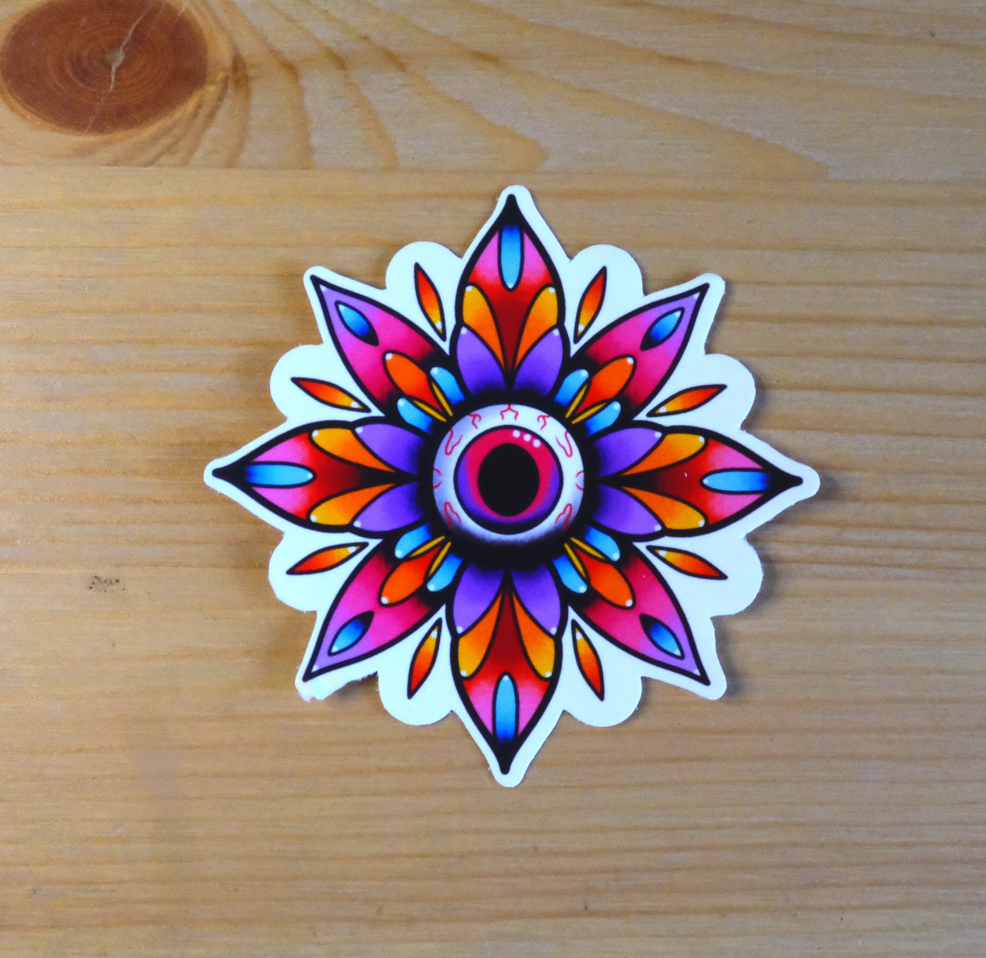 7cm wide glossy vinyl sticker, made in house (literally, I make them at home!)