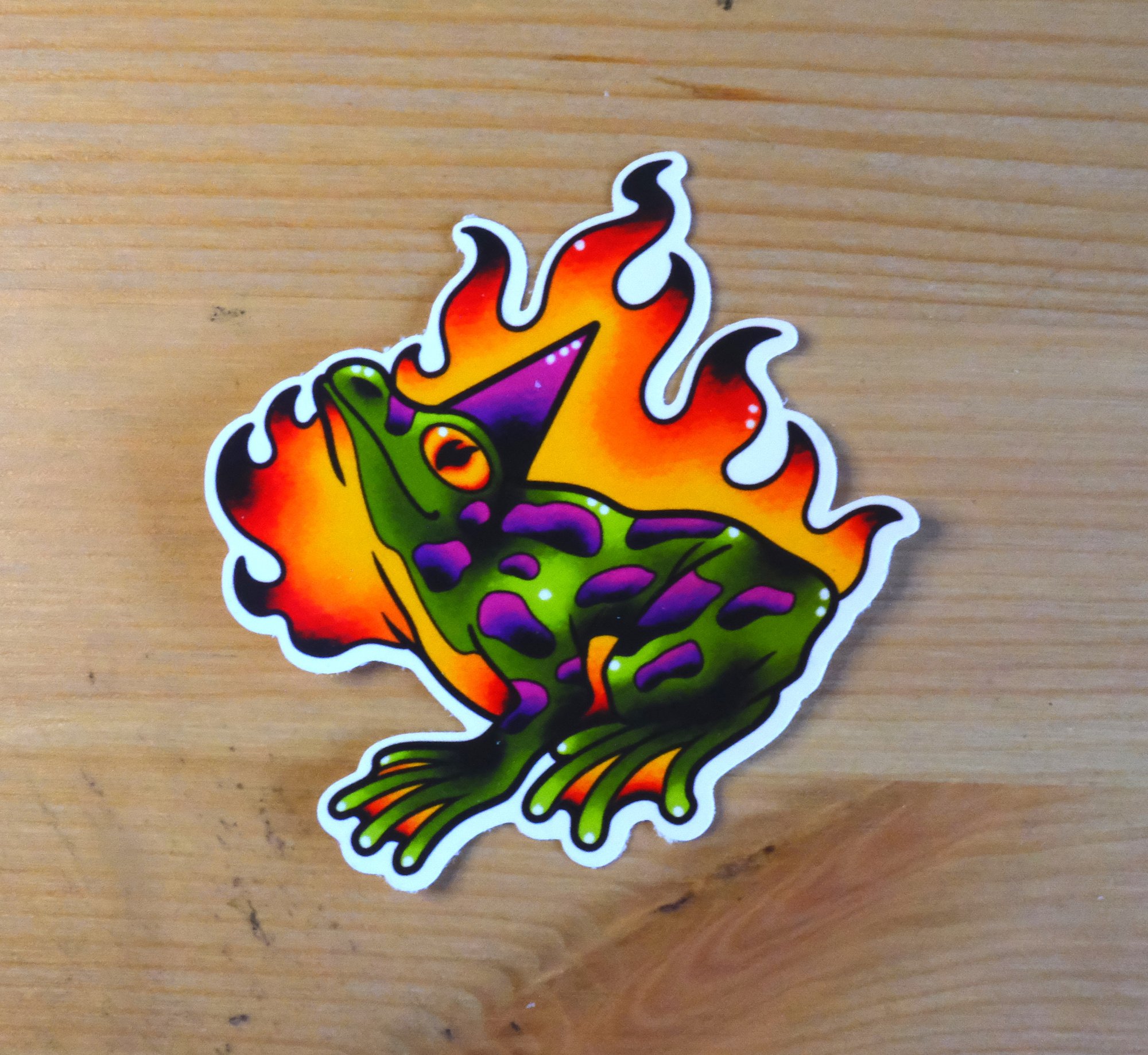 7cm wide glossy vinyl sticker, made in house (literally, I make them at home!)